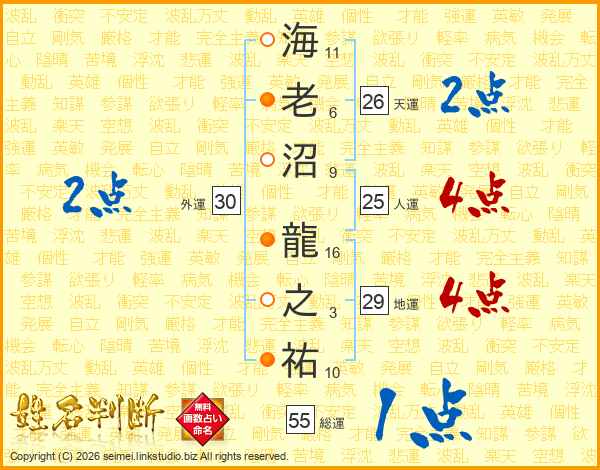 海老沼龍之祐さんの天運は26画の2点!