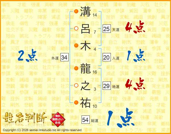 溝呂木龍之祐さんの総運は54画の1点!