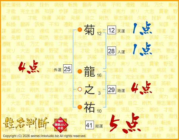 菊龍之祐さんの総運は41画の5点!