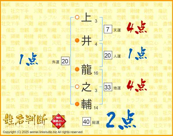 上(3画)井(4画) 龍(16画)之(3画)輔(14画)