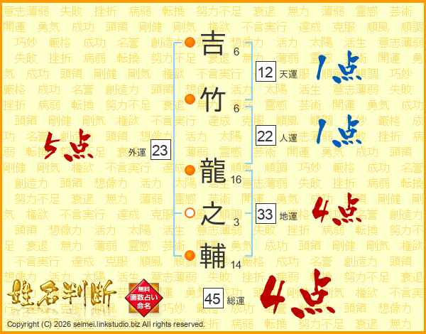 吉(6画)竹(6画) 龍(16画)之(3画)輔(14画)