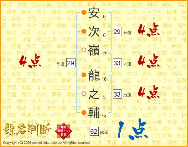 安次嶺龍之輔さんの外運は29画の4点!