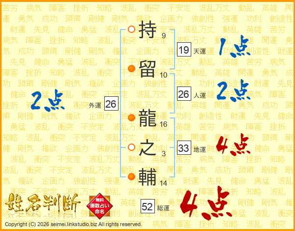 持(9画)留(10画) 龍(16画)之(3画)輔(14画)