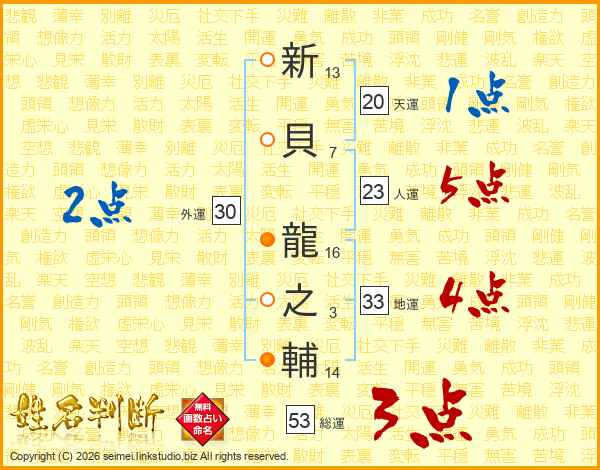 新(13画)貝(7画) 龍(16画)之(3画)輔(14画)