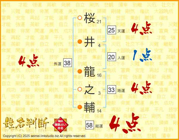 桜(21画)井(4画) 龍(16画)之(3画)輔(14画)