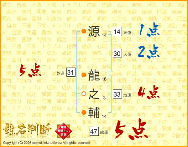 源龍之輔さんの総運は47画の5点!