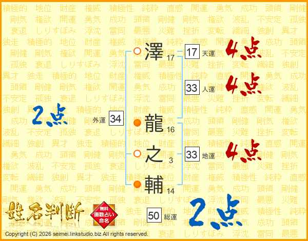 澤龍之輔さんの人運は33画の4点!