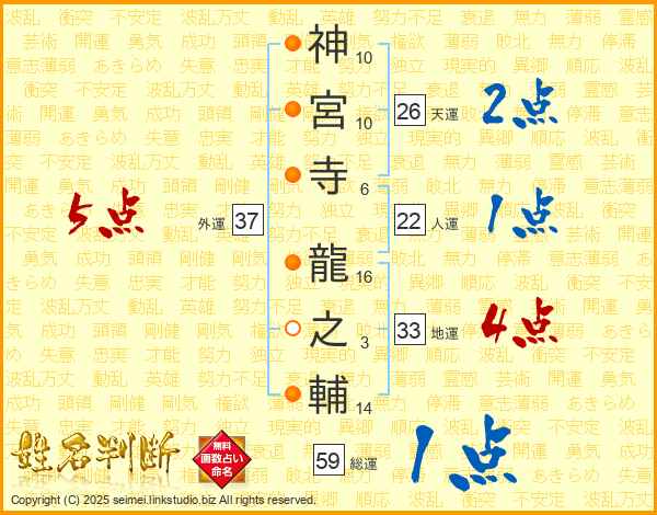 神(10画)宮(10画)寺(6画) 龍(16画)之(3画)輔(14画)