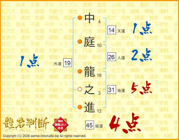 中庭龍之進さんの総運は45画の4点!
