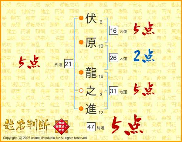 伏原龍之進さんの総運は47画の5点!