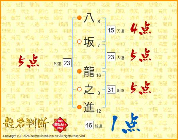 八坂龍之進さんの総運は46画の1点!