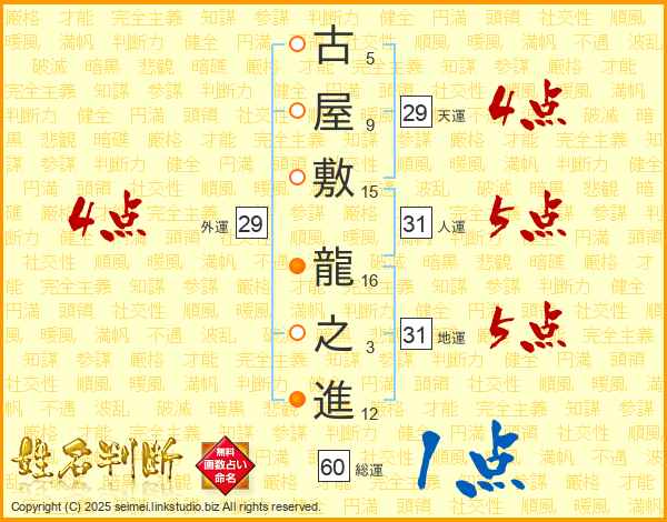 古屋敷龍之進さんの総運は60画の1点!