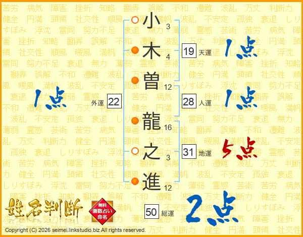 小木曽龍之進さんの地運は31画の5点!