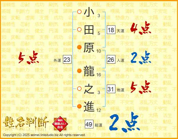 小田原龍之進さんの総運は49画の2点!