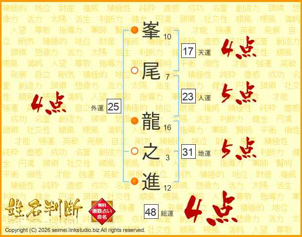 峯尾龍之進さんの総運は48画の4点!