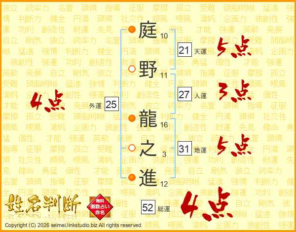 庭野龍之進さんの総運は52画の4点!