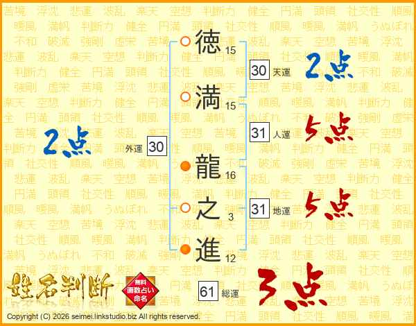 徳(15画)満(15画) 龍(16画)之(3画)進(12画)