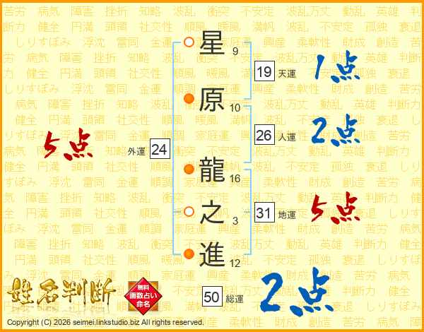 星原龍之進さんの総運は50画の2点!