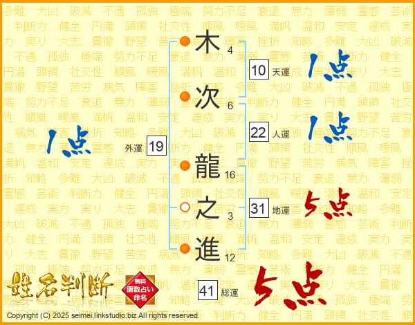 木次龍之進さんの地運は31画の5点!