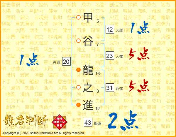 甲(5画)谷(7画) 龍(16画)之(3画)進(12画)