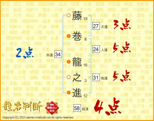 藤巻龍之進さんの総運は58画の4点!