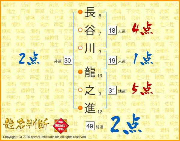 長谷川龍之進さんの総運は49画の2点!