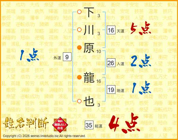 下川原龍也さんの総運は35画の4点!