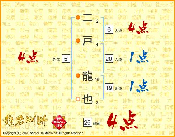 二戸龍也さんの総運は25画の4点!