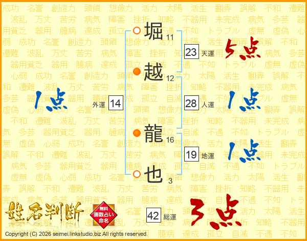 堀越龍也さんの天運は23画の5点!