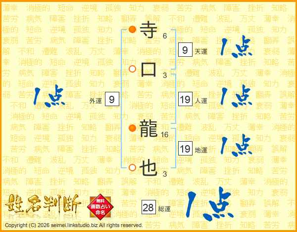 寺口龍也さんの人運は19画の1点!