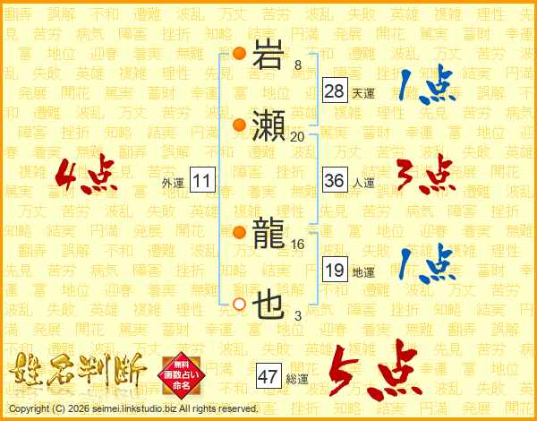 岩瀬龍也さんの総運は47画の5点!