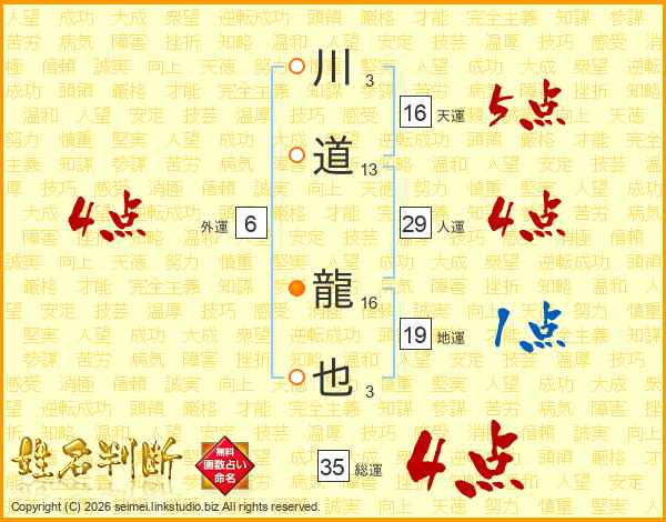 川道龍也さんの総運は35画の4点!
