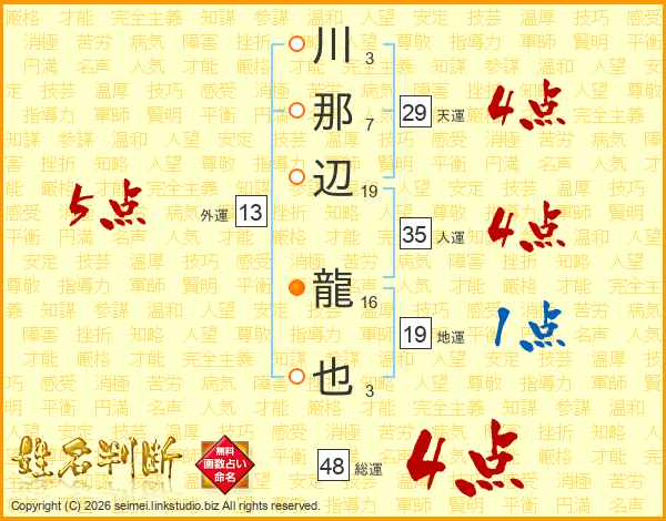 川那辺龍也さんの総運は48画の4点!