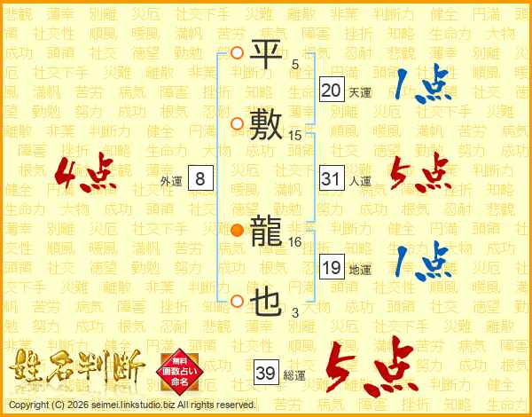 平敷龍也さんの人運は31画の5点!