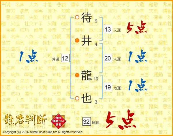 待井龍也さんの総運は32画の5点!