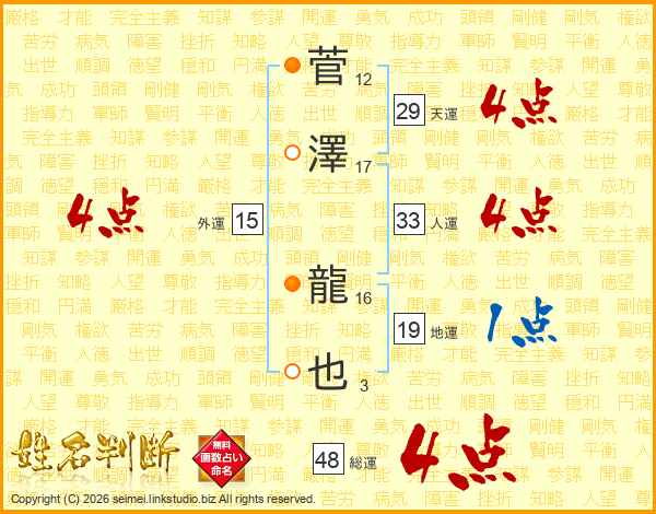 菅澤龍也さんの天運は29画の4点!