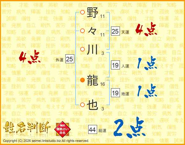 野々川龍也さんの総運は44画の2点!