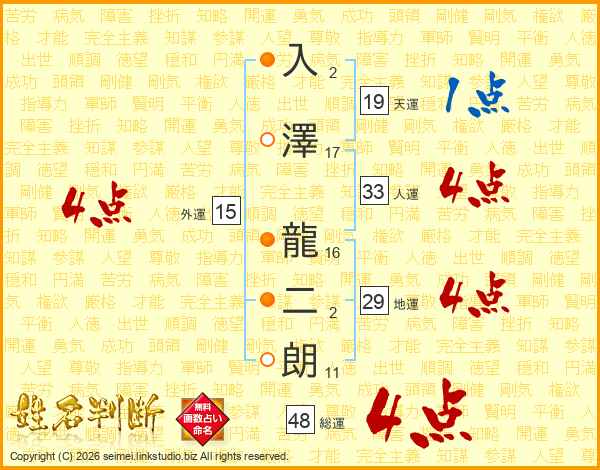 入澤龍二朗さんの総運は48画の4点!