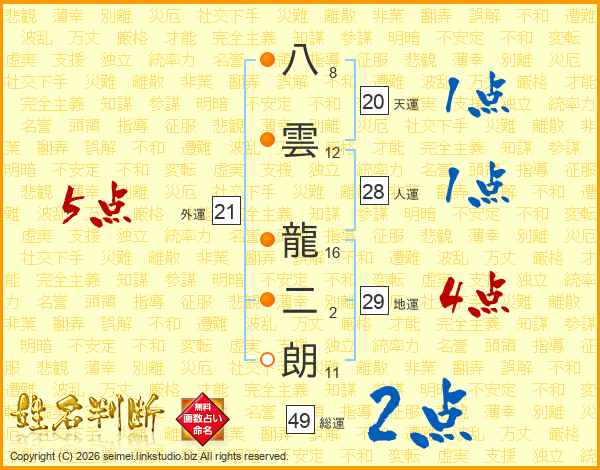 八雲龍二朗さんの総運は49画の2点!