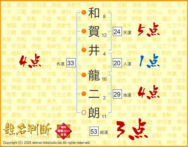 和賀井龍二朗さんの外運は33画の4点!
