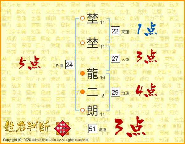 埜(11画)埜(11画) 龍(16画)二(2画)朗(11画)
