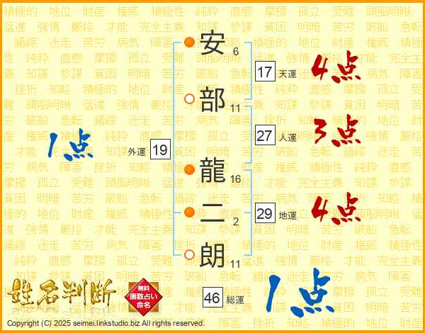 安(6画)部(11画) 龍(16画)二(2画)朗(11画)