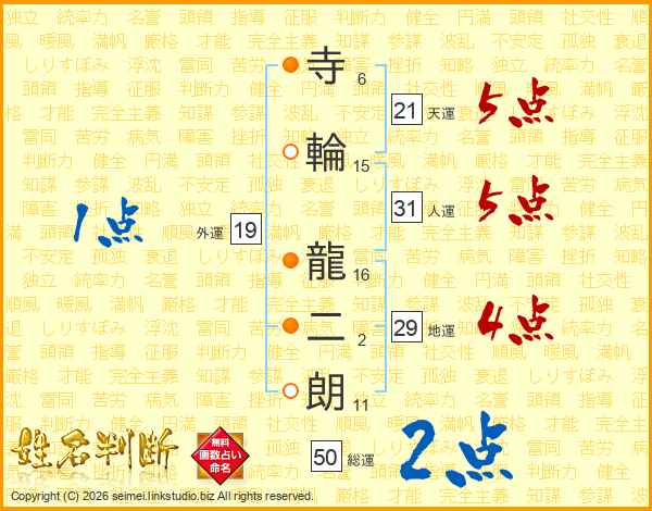 寺輪龍二朗さんの人運は31画の5点!