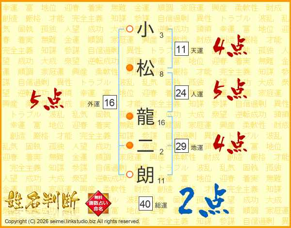 小松龍二朗さんの外運は16画の5点!