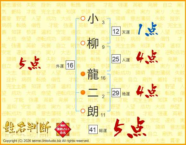 小柳龍二朗さんの総運は41画の5点!