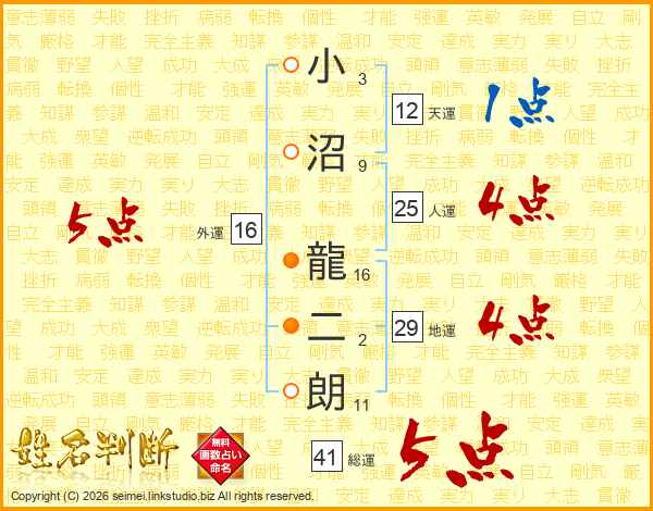 小沼龍二朗さんの人運は25画の4点!