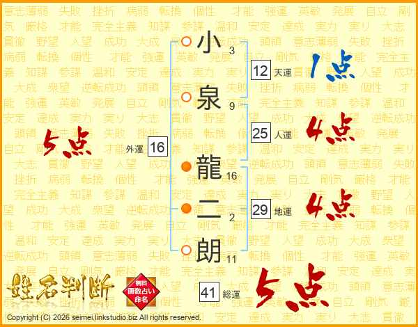 小泉龍二朗さんの総運は41画の5点!