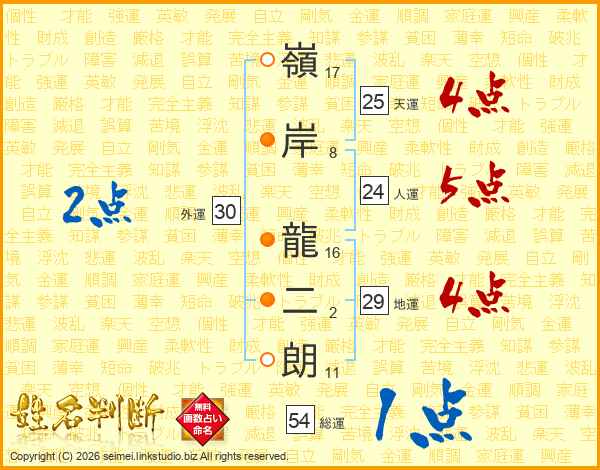 嶺岸龍二朗さんの総運は54画の1点!
