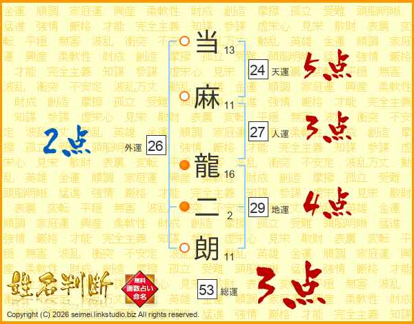 当麻龍二朗さんの外運は26画の2点!