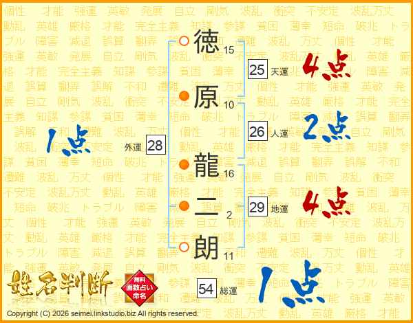 徳原龍二朗さんの人運は26画の2点!